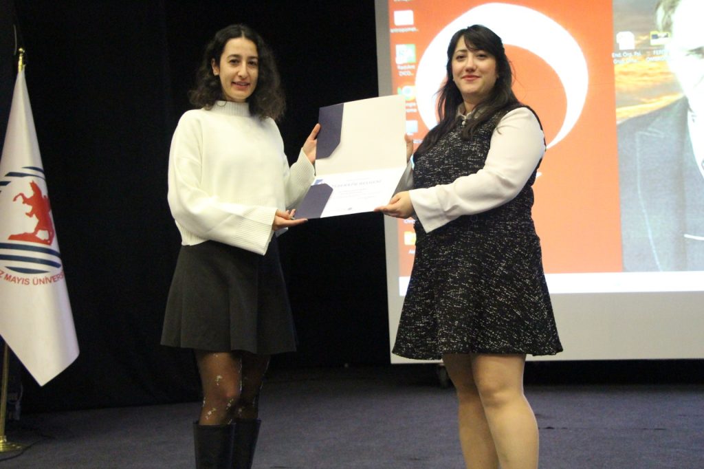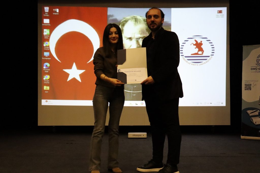 Etkinliğin sonunda konuşmacılara, Gazetecilik Topluluğu danışmanı Arş. Gör. Dr. Özlem Delal Abanoz ve Psikoloji topluluğu danışman hocası Öğr. Gör. Aysu Gül Şanli tarafından teşekkür belgesi takdim edildi.