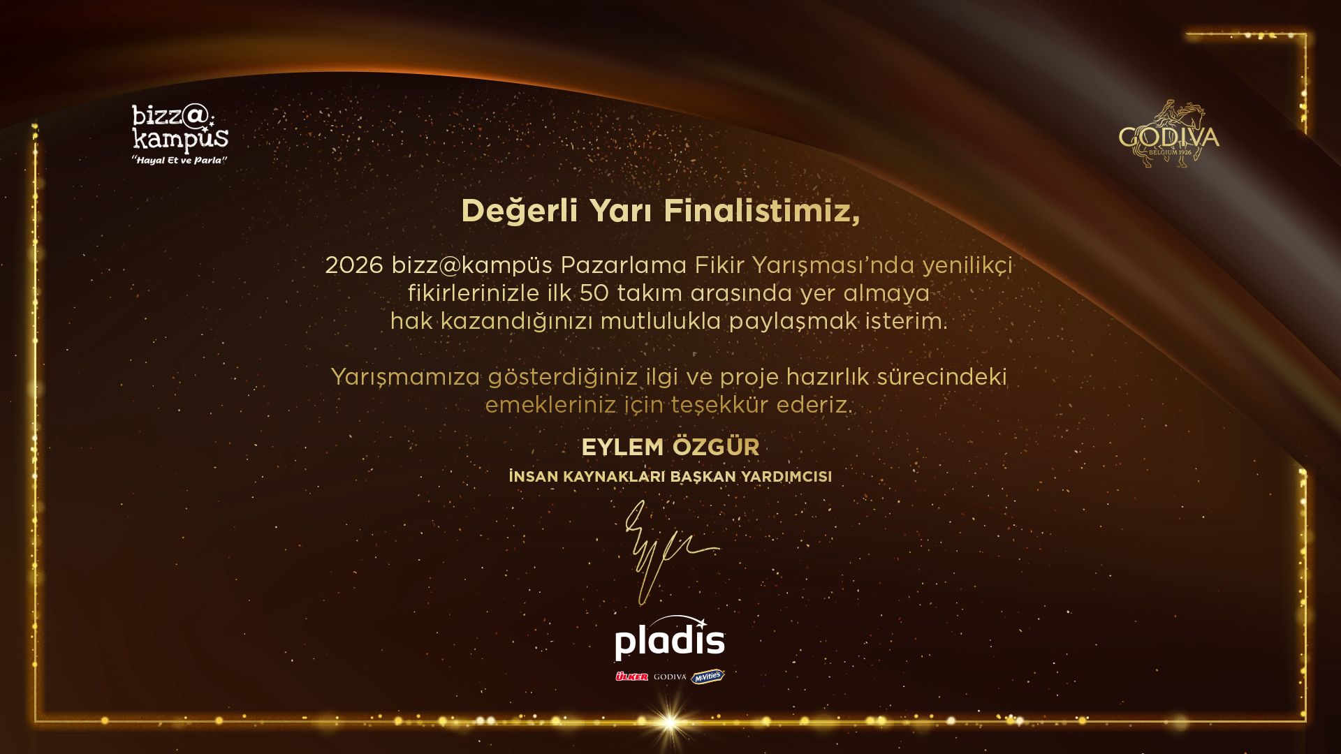 Halkla İlişkiler ve Tanıtım Bölümü 3. sınıf öğrencileri Muhammed İbrahim Yakar, Zeynep Büşra Topsakal ve Raya Ahmadova, geliştirdikleri “Godiva Clarivelle” adlı proje ile yarışmada ilk 50 takım arasına girmeye hak kazandı.
