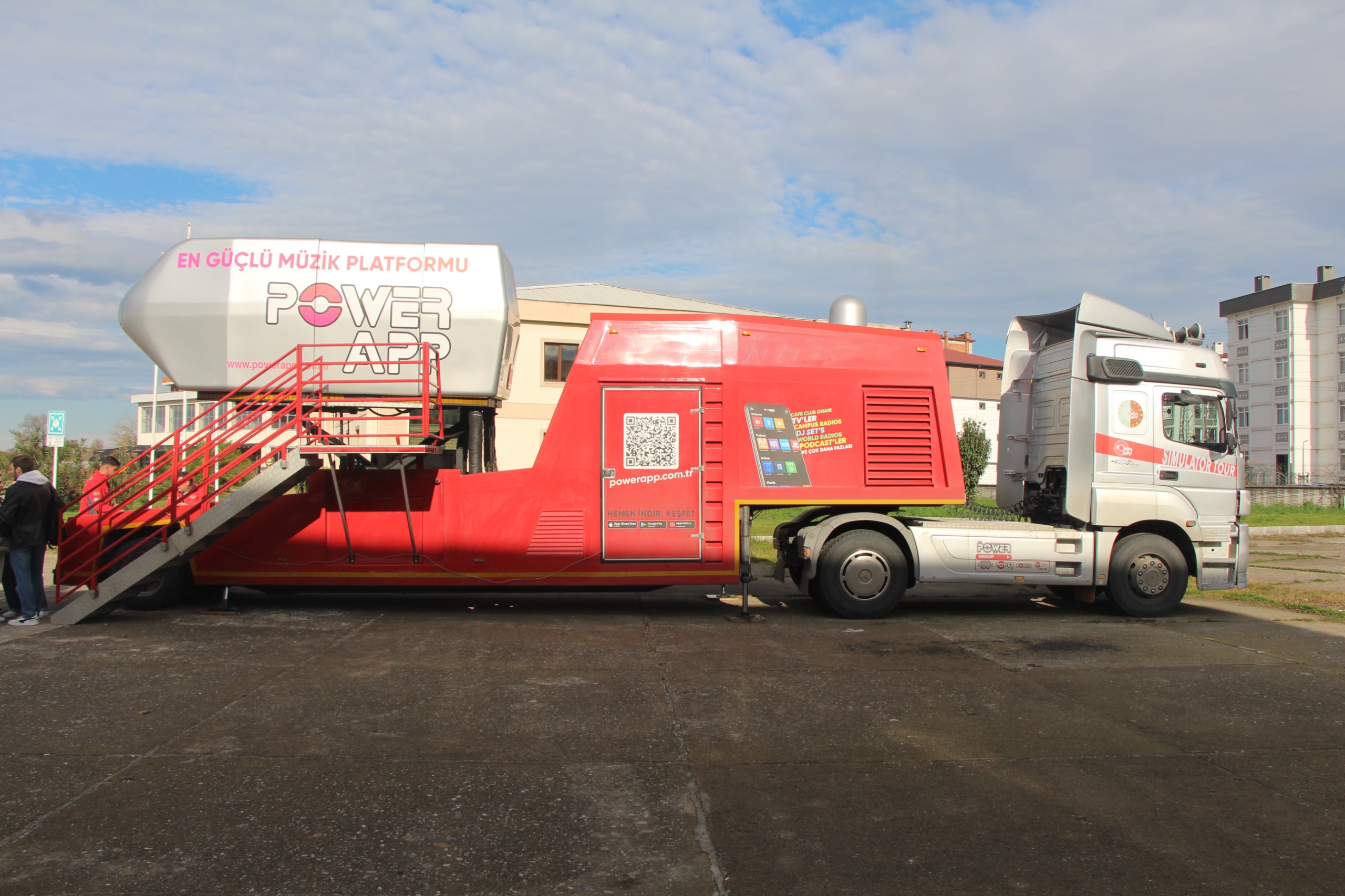 MKGD kampüsünde kurulan Power FM Oyun ve Power App 5D Simülatör tırlarında öğrenciler için 5D film gösterimi ile direksiyon seti üzerinden dijital araba yarışı düzenlendi.