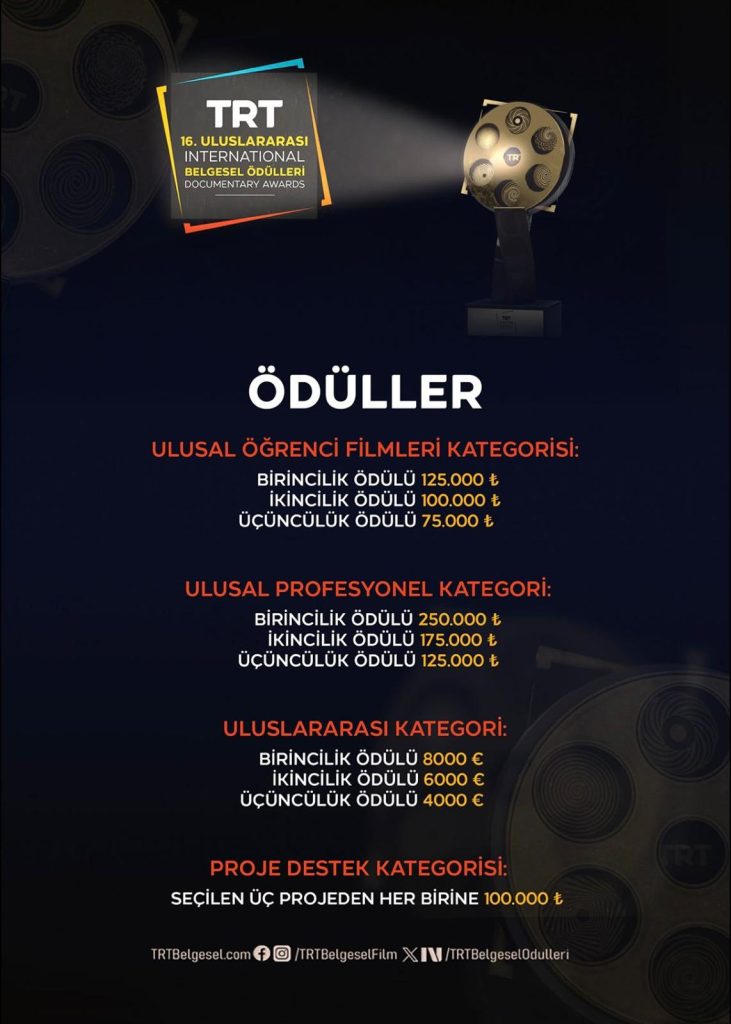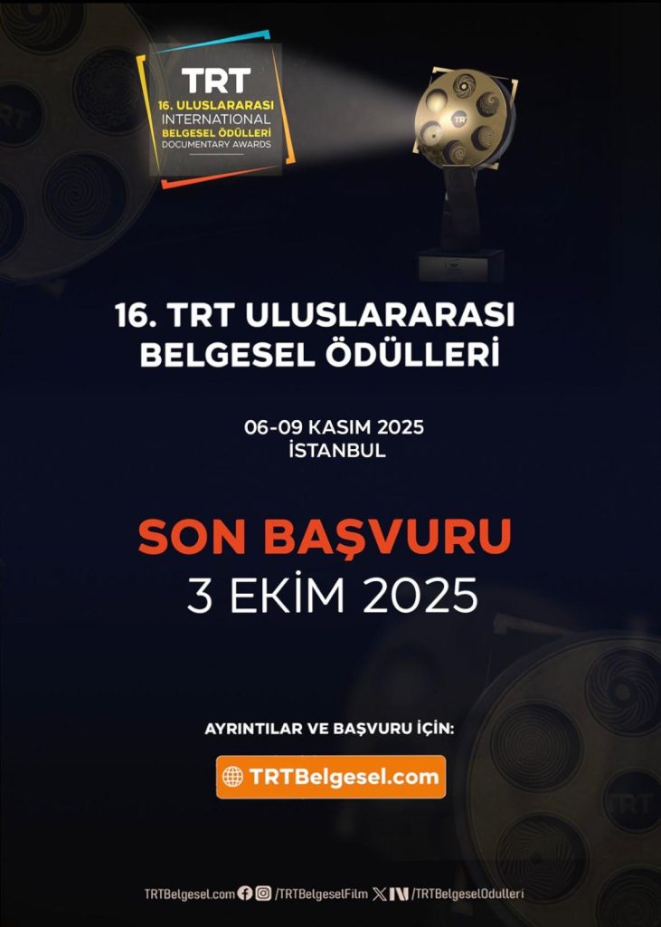 Bu yıl 16. kez düzenlenen TRT Uluslararası Belgesel Ödülleri, belgesel sinemaya katkı sunmayı ve genç belgeselcilere destek olmayı hedefliyor. Öğrenci ve profesyonellerin yanı sıra uluslararası belgeselcileri de kapsayan yarışmaya başvurular 3 Ekim 2025 tarihine kadar devam edecek. Ödül töreni ise 6-9 Kasım 2025 tarihlerinde İstanbul’da gerçekleştirilecek.